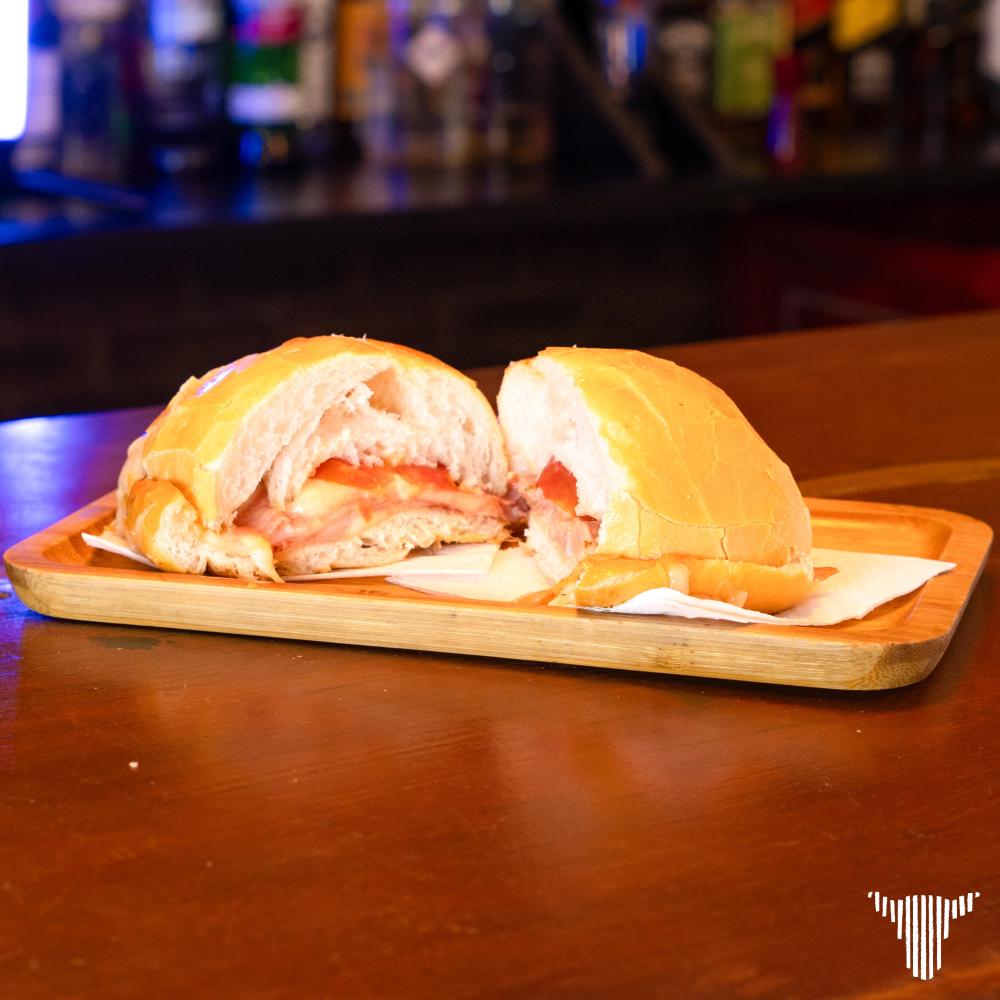 Pão Francês, queijo muçarela, presunto, tomate e orégano.