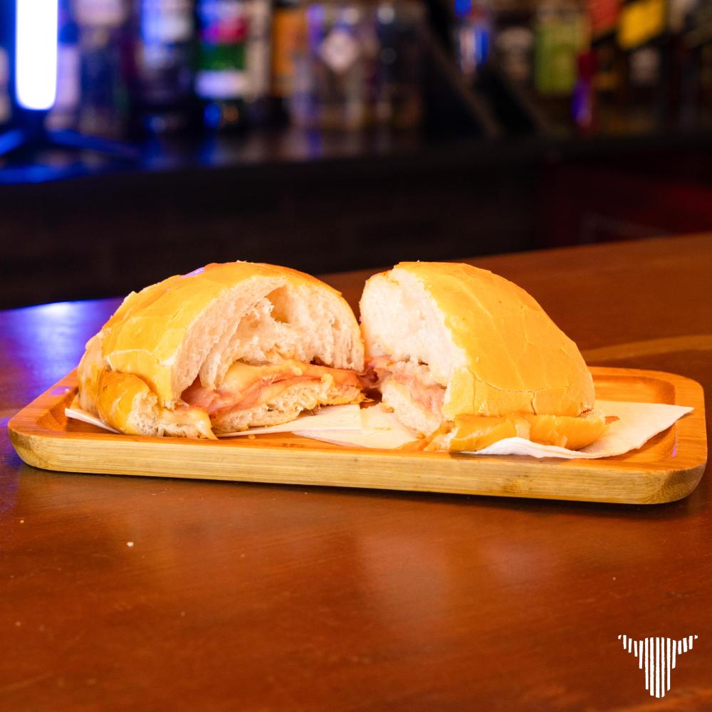 Pão francês, queijo muçarela e presunto.